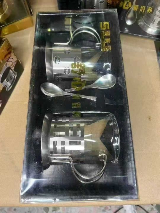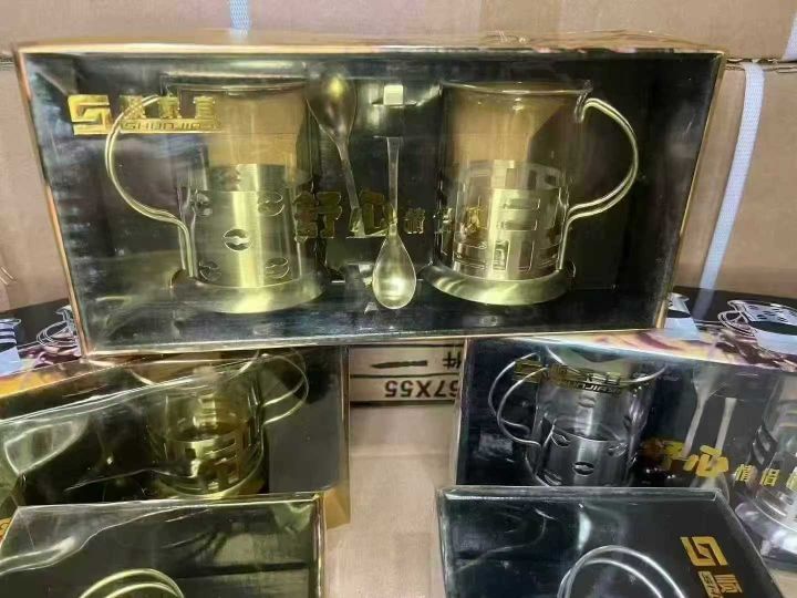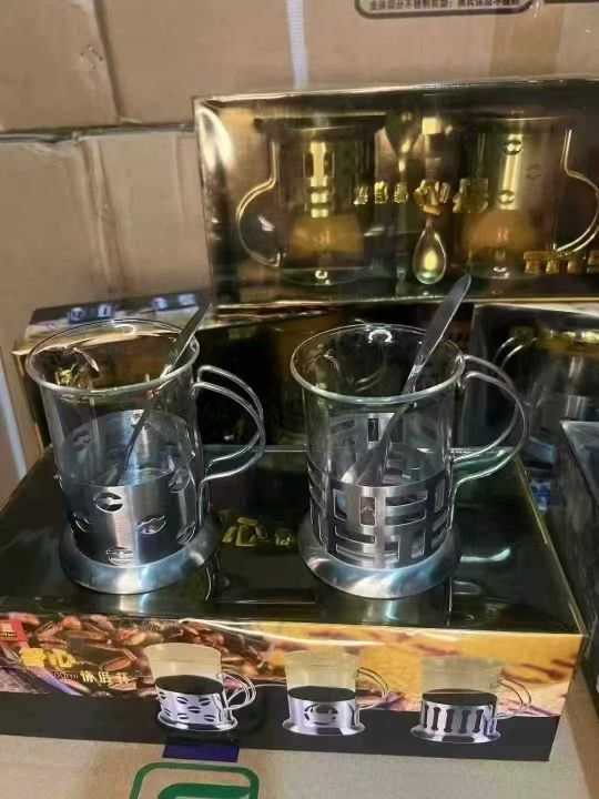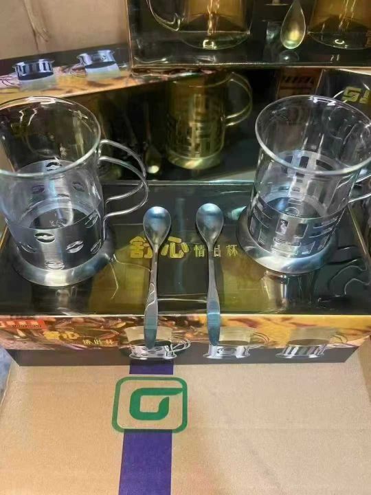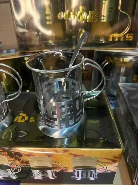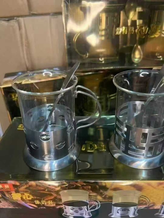 不锈钢玻璃杯咖啡杯200ml防摔耐热金属底座托套法压,原箱原件处理350套左右