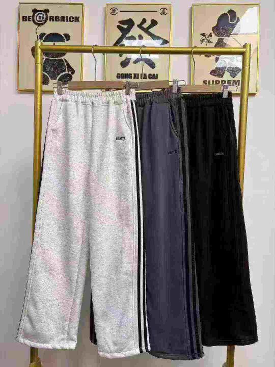 天猫在售款400件左右高品质男女同款青少年潮牌三条杠加绒加厚运动休闲纯棉卫裤,刺绣小标工艺,内里加婴儿绒(有100件左右不加绒的)单款三色,均码(可穿80-120斤)独立包装