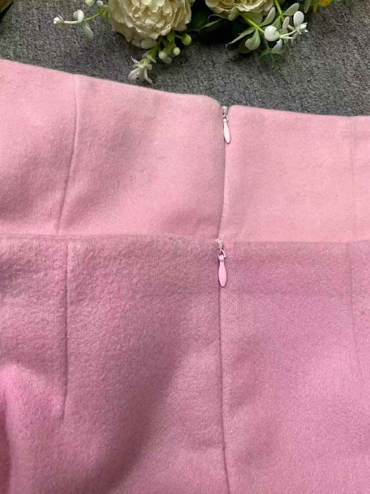 秋冬新款净版港味纯欲粉色设计感不规则A字半身毛衣裙...