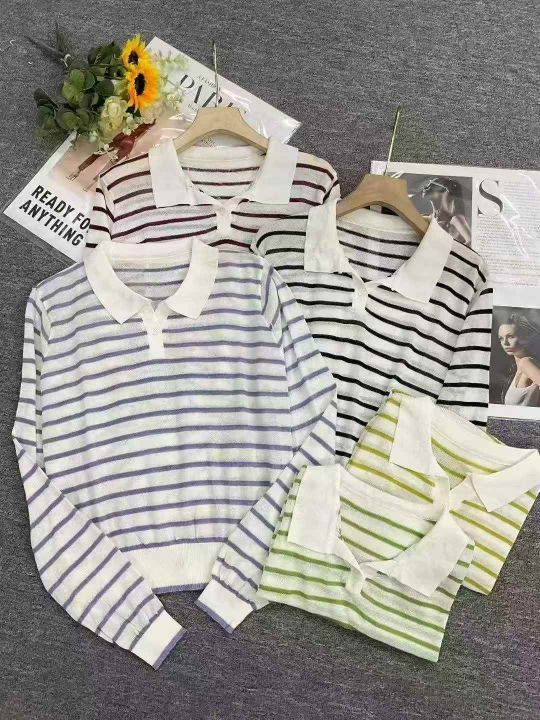 早秋新款韩系宽松高级感撞色条纹百搭POLO领长袖针织毛衣,独立包装,均码面料柔软舒适,宽松款,最后1800件,全清5.9元超低价秒杀!分货加一!