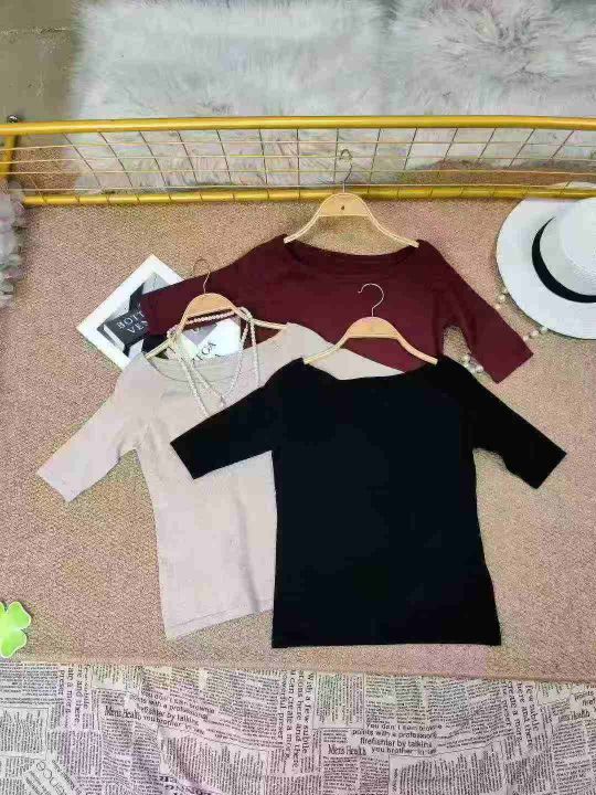 中袖洋气螺纹一字领上衣内搭纯欲风T恤显瘦打底衫,单款三色,独立包装,尺码sml码,高弹力面料,数量132件,秒杀价6.5