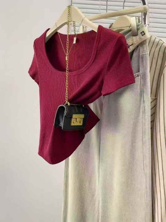 辣妹短袖T恤夏季正肩新款修身显瘦短款上衣,独立包装...