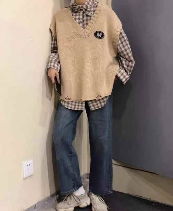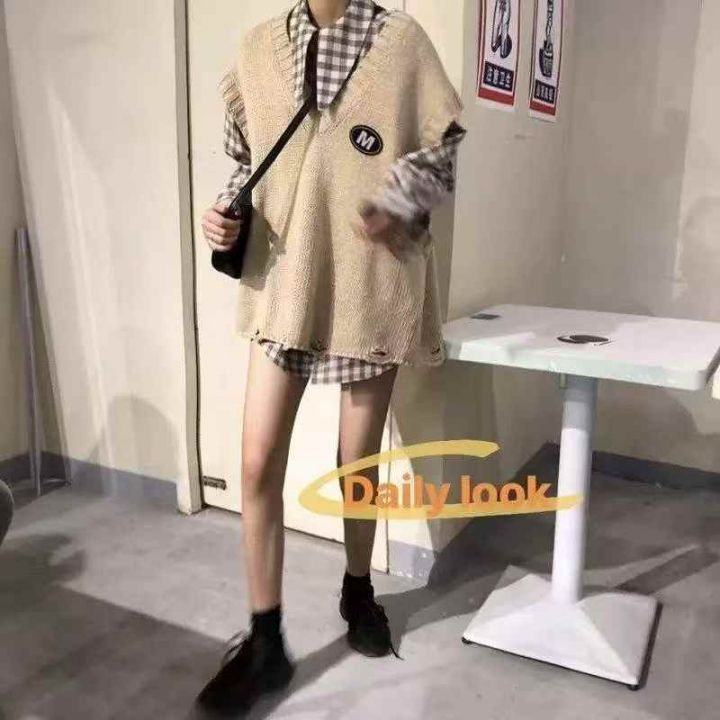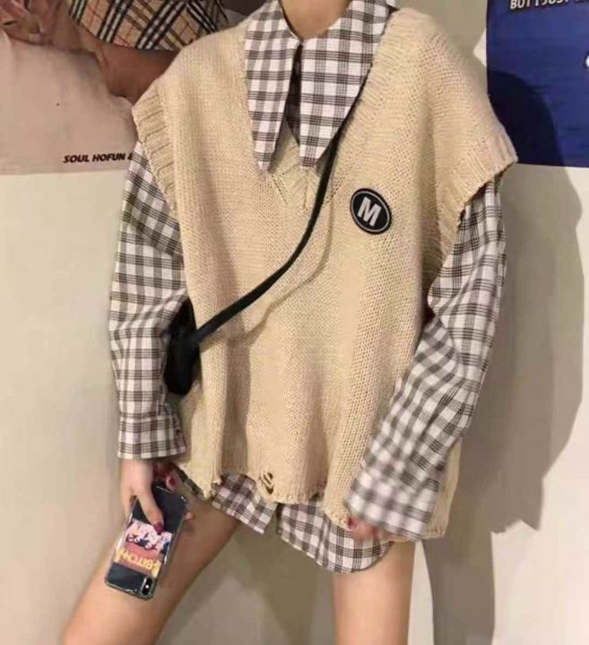 秋冬新款宽松慵懒风百搭韩系叠穿套头毛衣马甲,独立包...