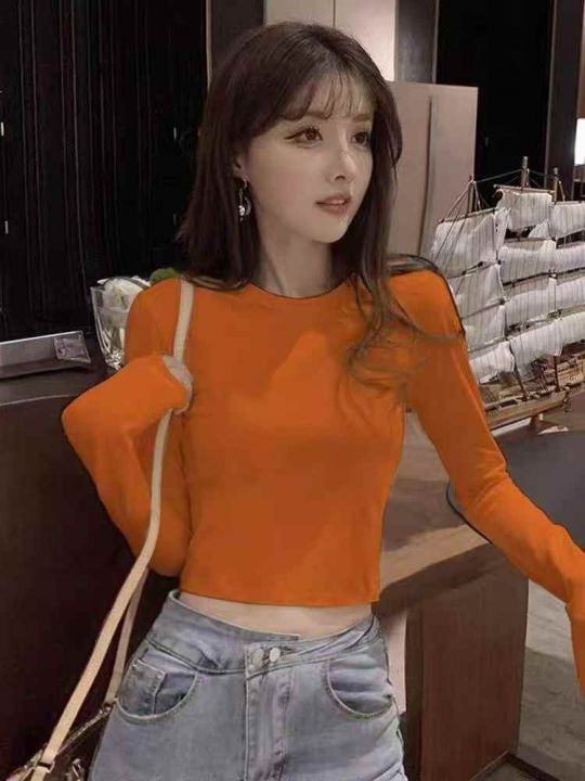 春秋新款外穿打底净版简约弹力修身显瘦弹力棉长袖t恤...