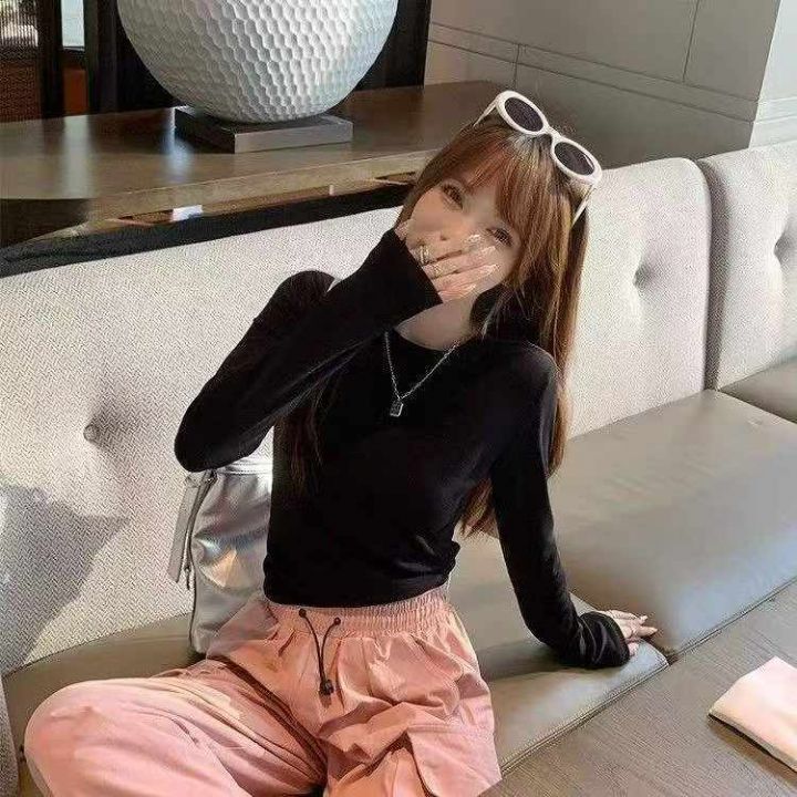 春秋新款外穿打底净版简约弹力修身显瘦弹力棉长袖t恤...