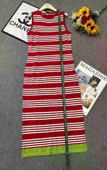 夏季新款撞色条纹韩系冰丝开叉大长款针织背心连衣裙,独立包装,均码面料软糯舒适弹力大,210件,全清8.9元超低价秒杀!分货加一!