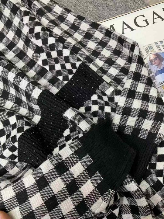 秋冬新款韩系重工烫钻高领千鸟格针织毛衣连衣裙,独立包装,均码面料软糯舒适弹力大,440件,全清6.9元超低价秒杀!分货加一!