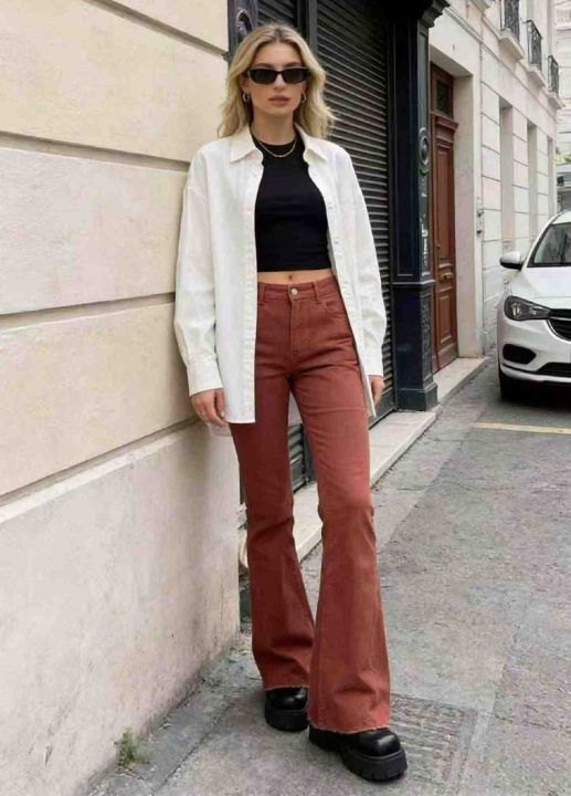 春季新款品牌外贸原单美式宽松高弹力洗水棉微喇叭牛仔长裤,独立包装,码数...