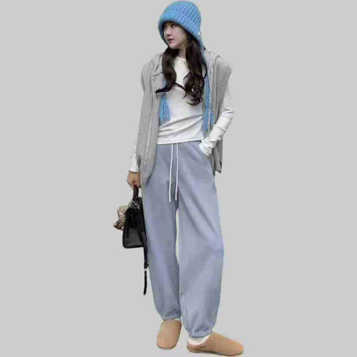 9.8元清时尚潮流抽绳纯棉加绒卫裤,整款两色,面料厚...