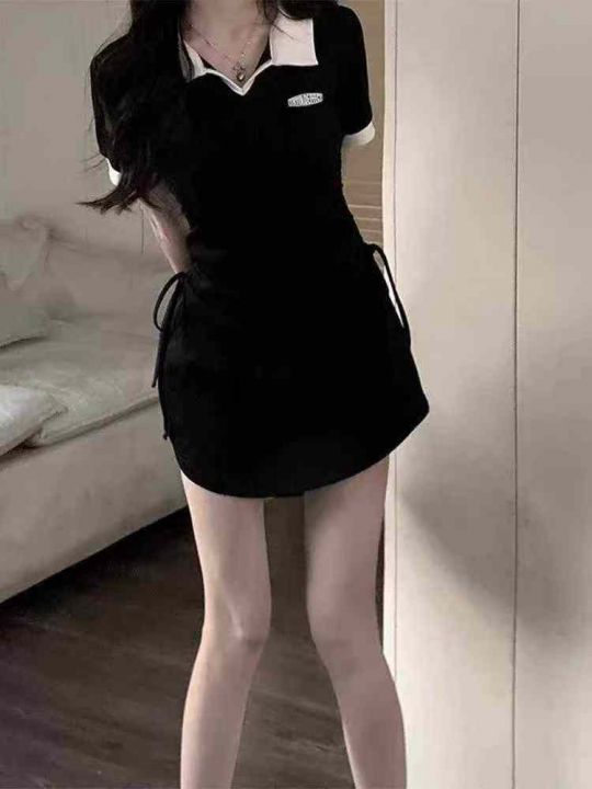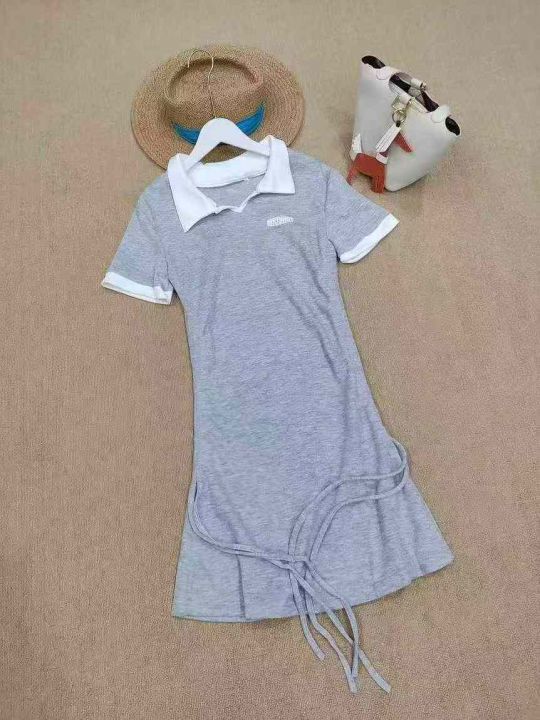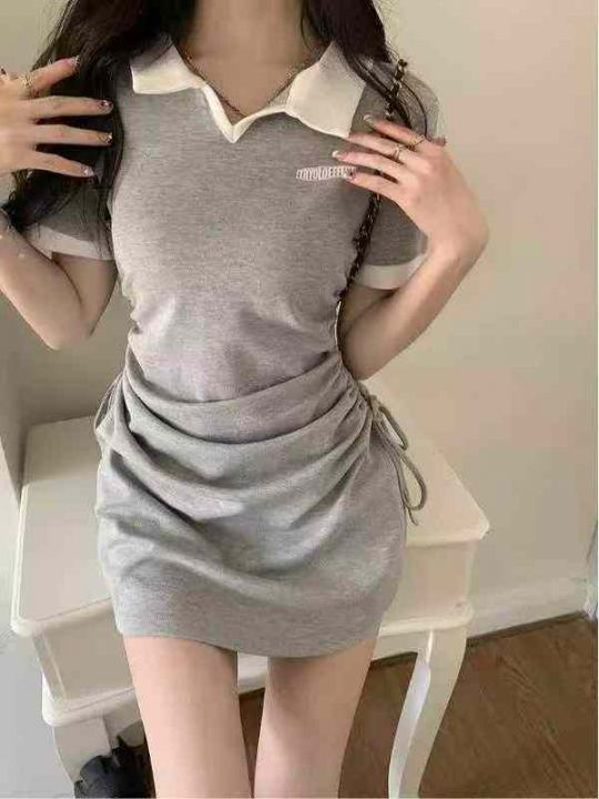 [月亮]:纯欲Polo领抽绳收腰显瘦连衣裙