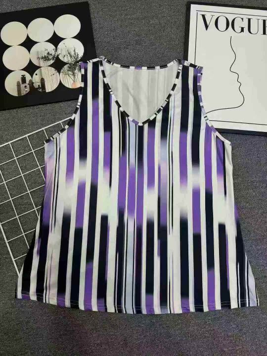 复古条纹背心吊带宽松显瘦V领宽松通勤夏季穿着舒适女士印花仙气,独立拉链包装,数量300左右,码数XL-5XL,全清3.5元