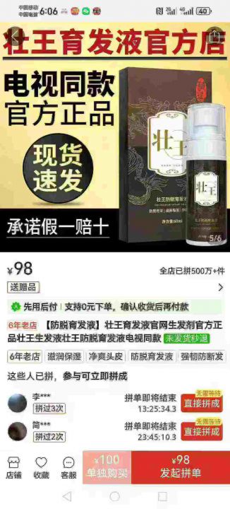 壮王品牌的防脱育发液还剩240瓶,全打包0.7元一瓶,12...