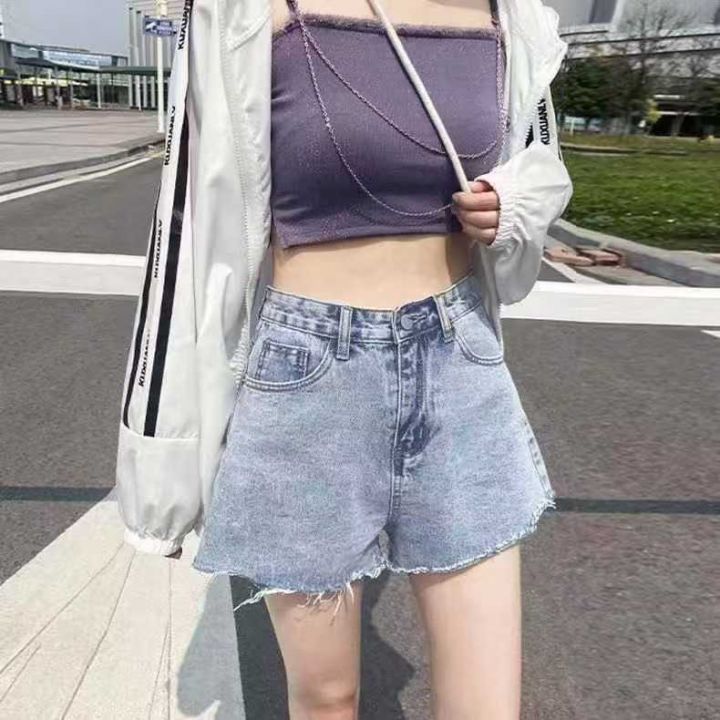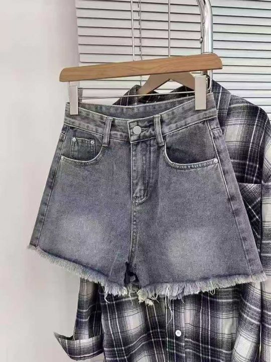 高腰牛仔短裤☕️440条全清9.9元,码数26-31,独立包装,网红夏新款港味复古毛边a字裤宽松显瘦牛仔短裤潮