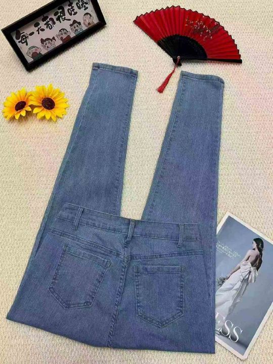 春秋新款高弹力洗水棉网红复古修身显瘦显示牛仔铅笔裤...