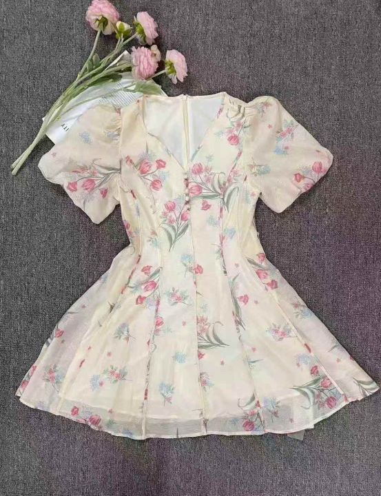1300多件法式碎花v领高级感御姐风气质收腰泡泡袖连衣...