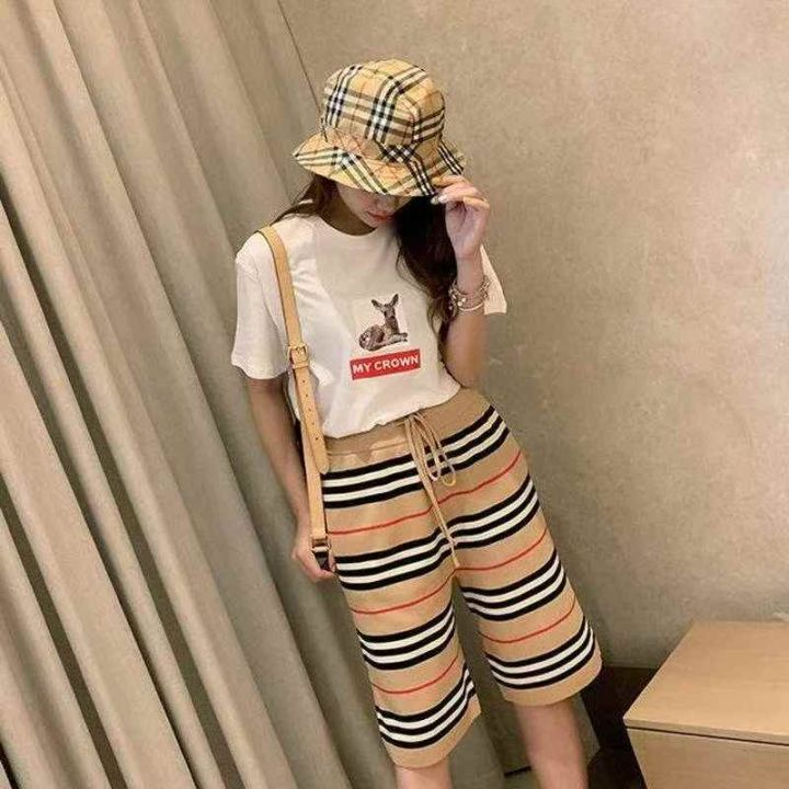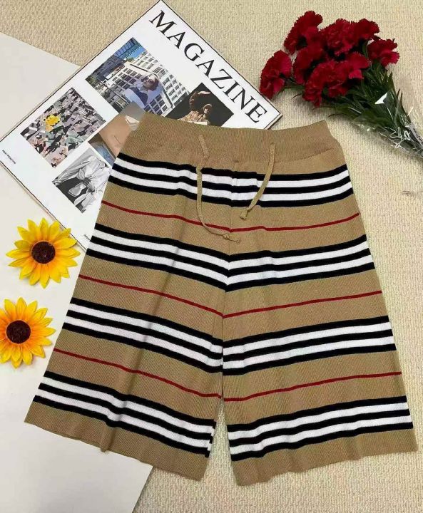 夏季新款男女同款网红款抽绳直筒宽松条纹冰丝针织短裤...