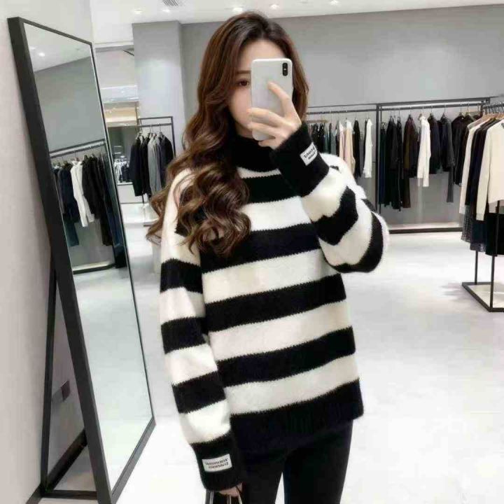 5.9元清秋季新款宽松长款条纹针织衫,数量2000件左右,单款5色,均码宽松版...