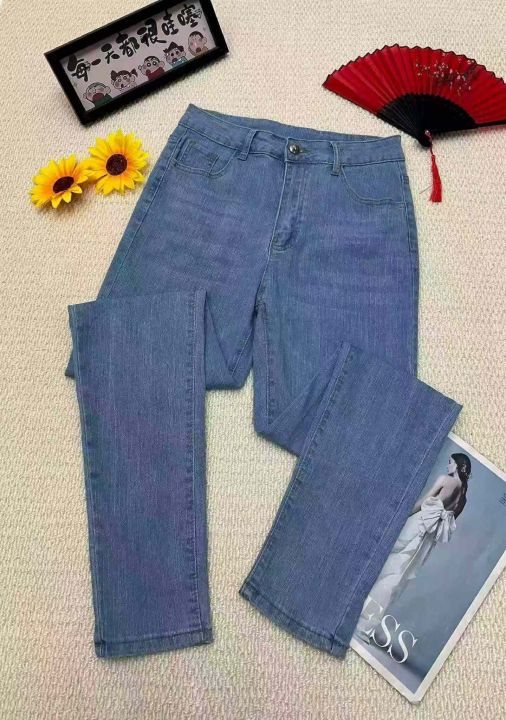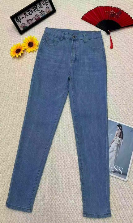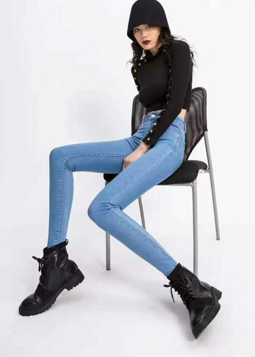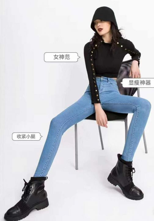 春秋新款高弹力洗水棉网红复古修身显瘦显示牛仔铅笔裤...