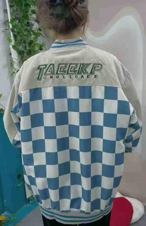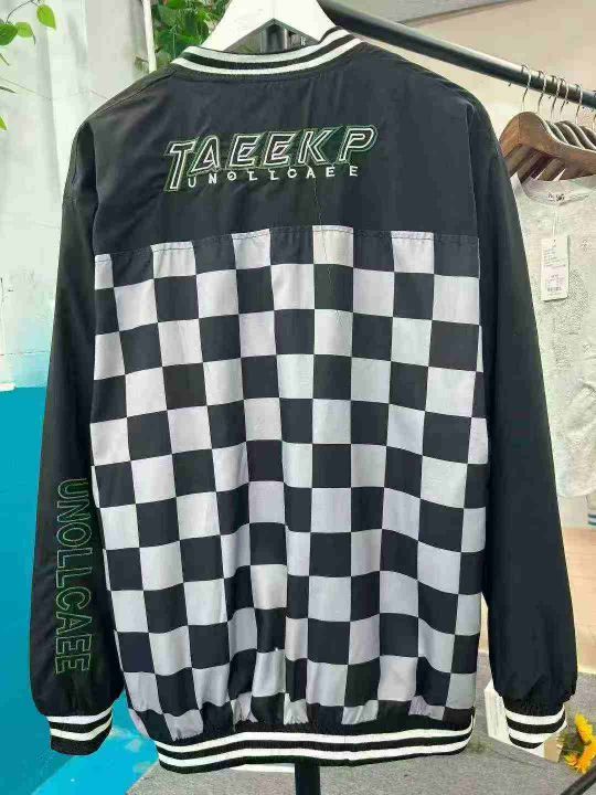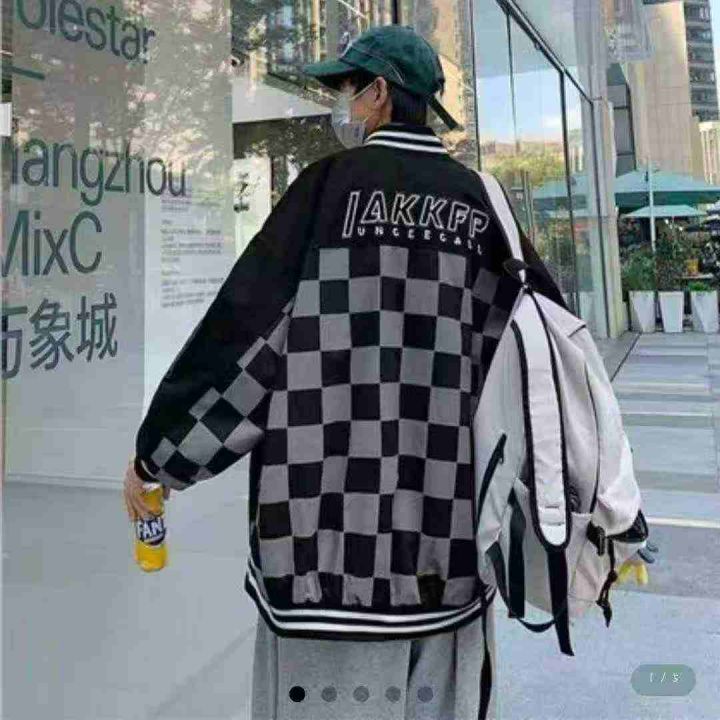 男女同款棒球服外套夹克,大版型宽松版U字母图案棋盘格式外套,带里布独立包装,码数M---XXL,总数量873件,分货加一