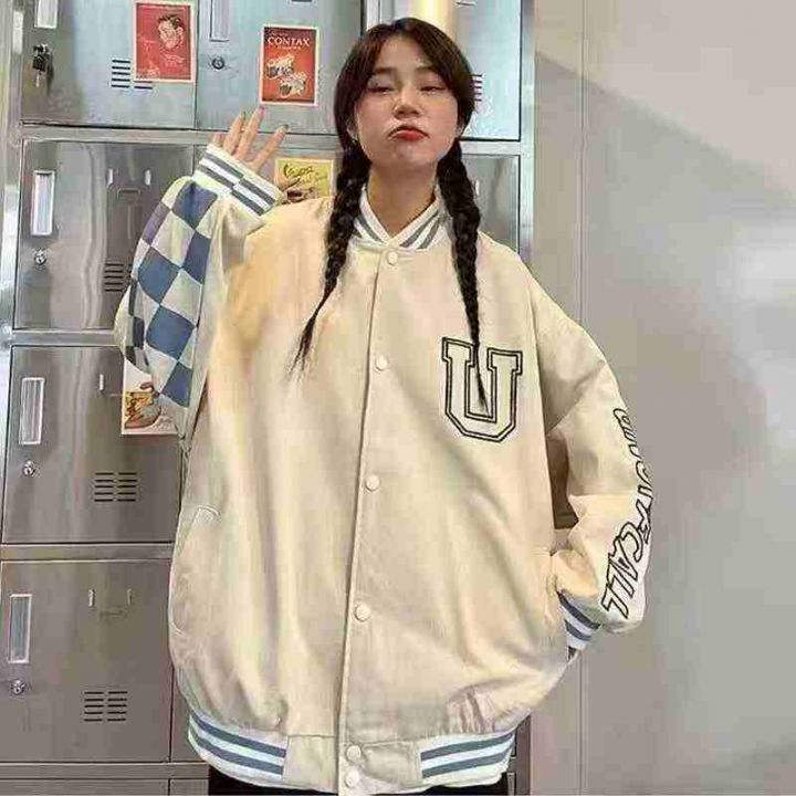 全清15.8男女同款棒球服外套夹克,大版型宽松版U字母...