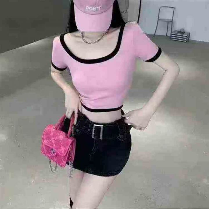 ① 辣妹风纯欲短袖t小众修身显瘦上衣!高弹力!独立包...