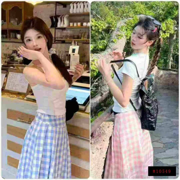 2.9清工厂回收322件甜美阳光多巴胺大码格子五分半身裙...