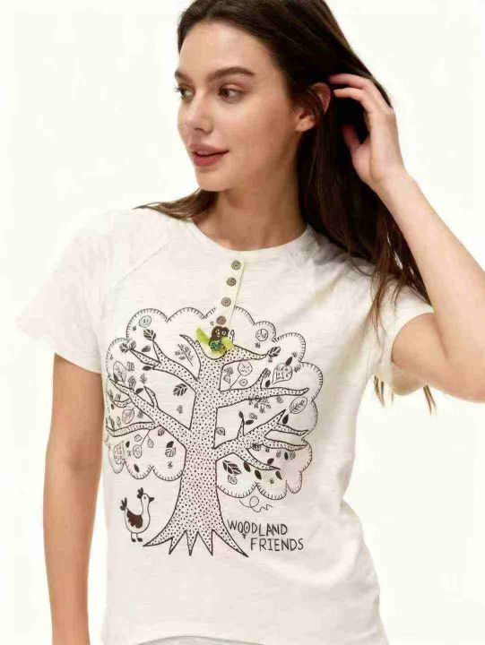 手绘森林树+小鸡/猫头鹰刺绣图,清新不撞款,搭牛仔裤/短裙都绝!