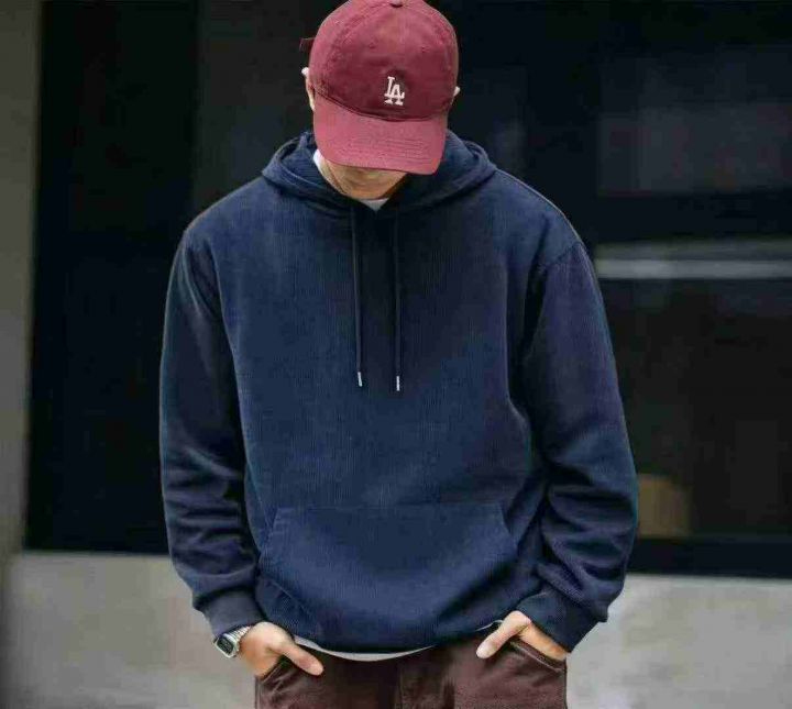 春秋新款灯芯绒净版宽松慵懒风连帽卫衣,独立包装,码...
