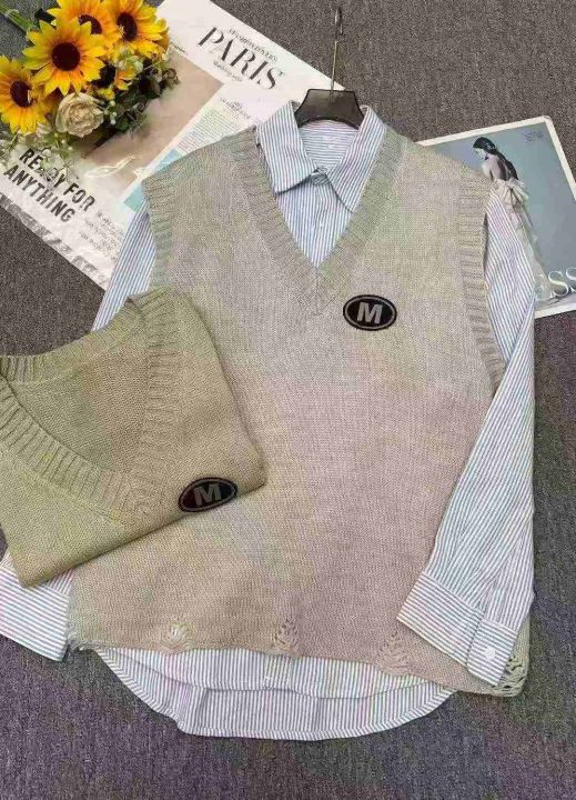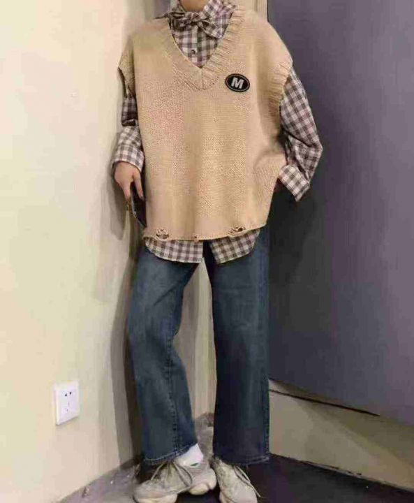 秋冬新款宽松慵懒风百搭韩系叠穿套头毛衣马甲,独立包...