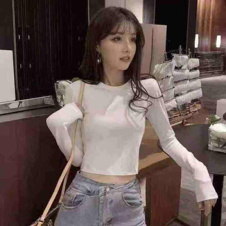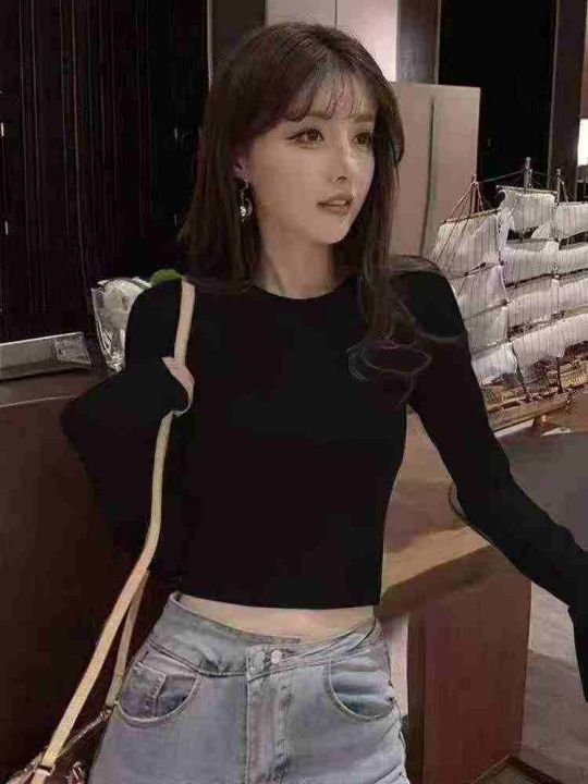 春秋新款外穿打底净版简约弹力修身显瘦弹力棉长袖t恤...