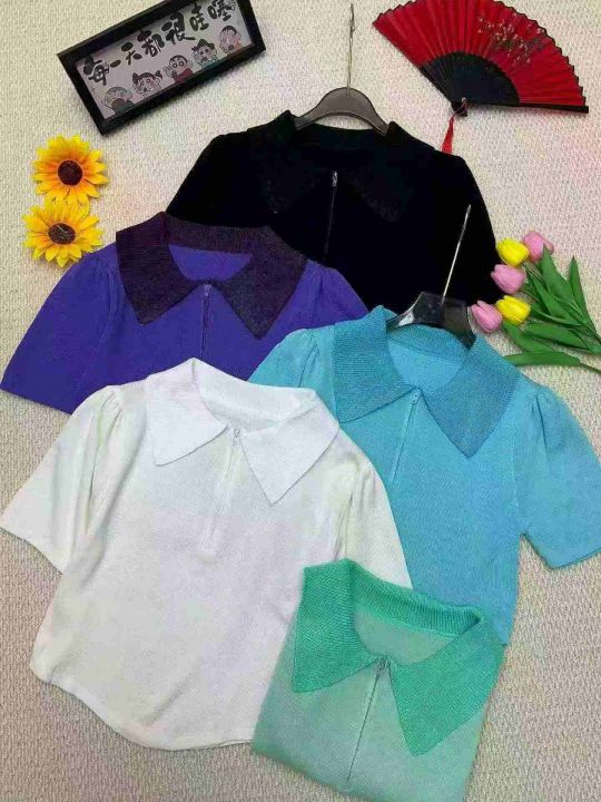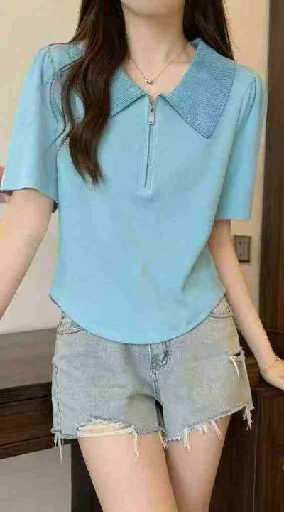 夏季新款韩系正肩POLO领撞色设计感拉链显瘦针织T桖,独立包装,均码年龄柔软舒适弹力大,1620件,全清6.9元超低价秒杀!分货加一!