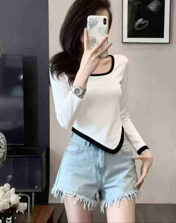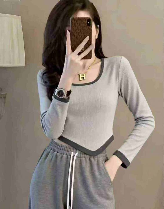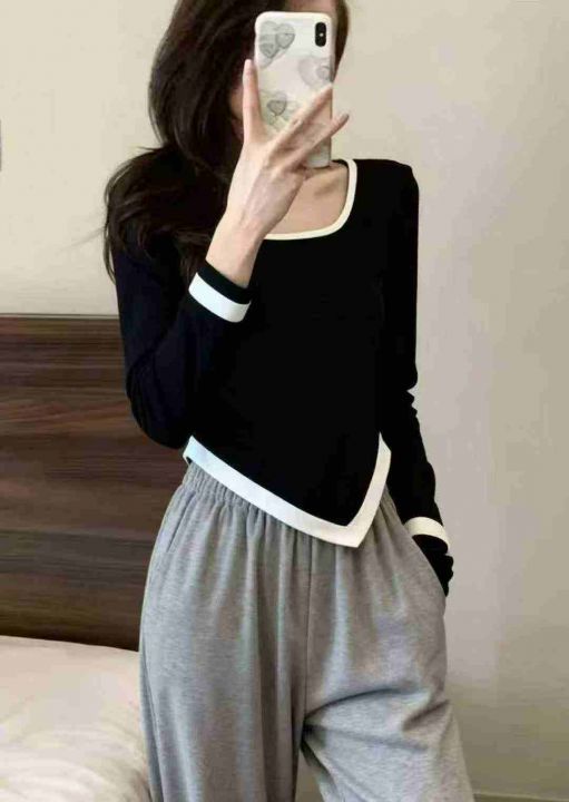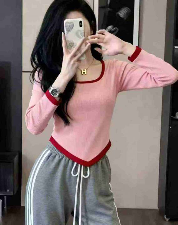 天猫精选360件女装上衣打底衫,春秋洋气修身纯欲辣妹性感U领鱼骨德绒长袖上...