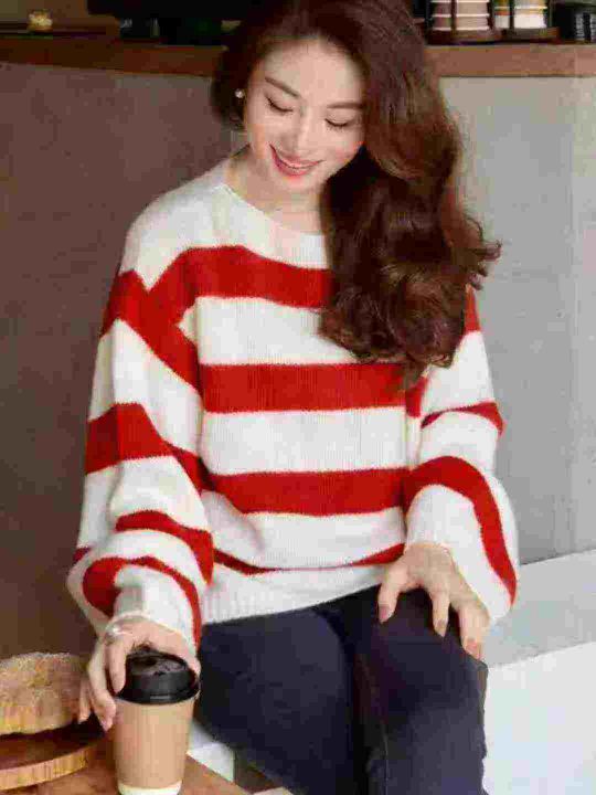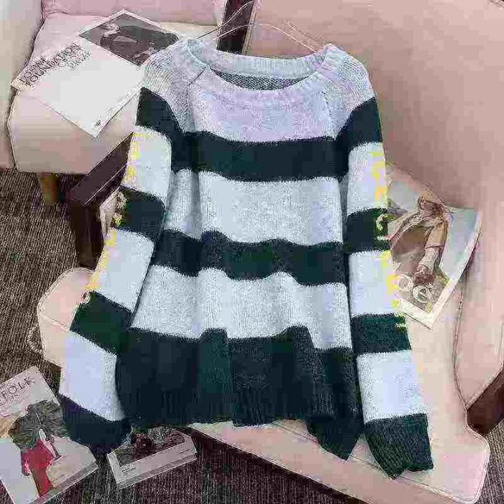 女装秋冬款复古撞色条纹ins港风大版厚重宽松毛衣针织衫上衣,独立包装,均码,633件,清8.8,分➕1