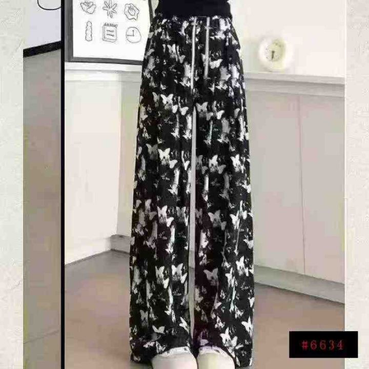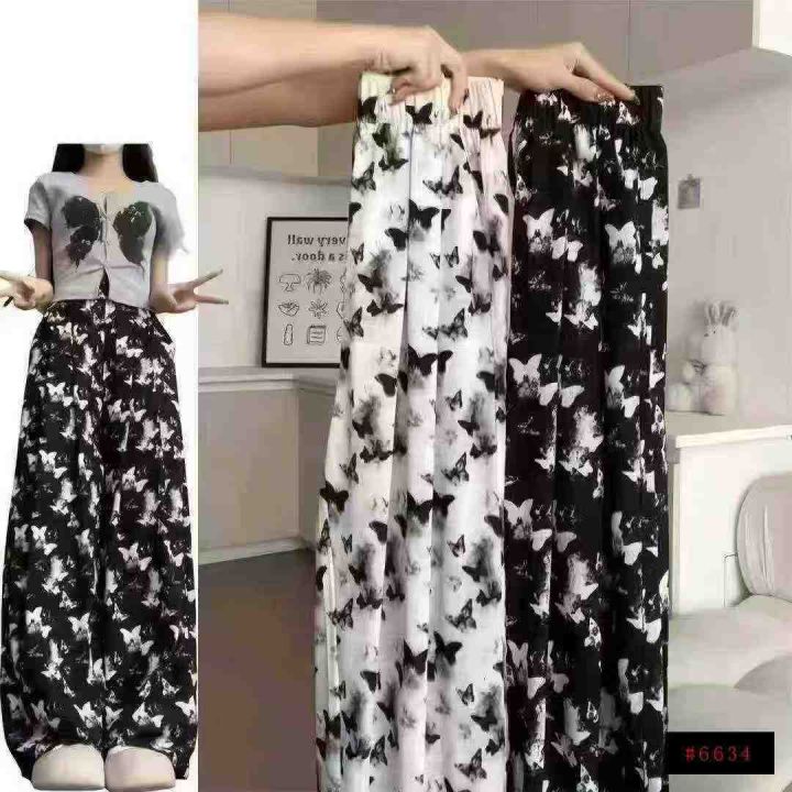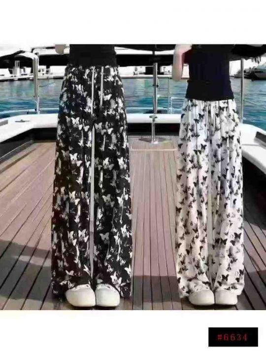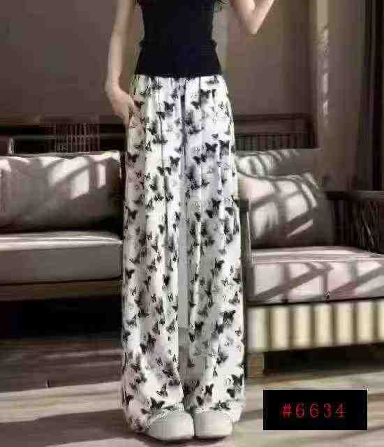 新中式水墨蝴蝶冰丝阔腿裤夏季国风裤女薄款休闲垂感直筒拖地裤子,垂感好,面料柔软舒适,夏天穿它凉感十足[哇],松紧腰不挑人,全部全新独立包装,品质,200件起分货[太阳]9.8@_@