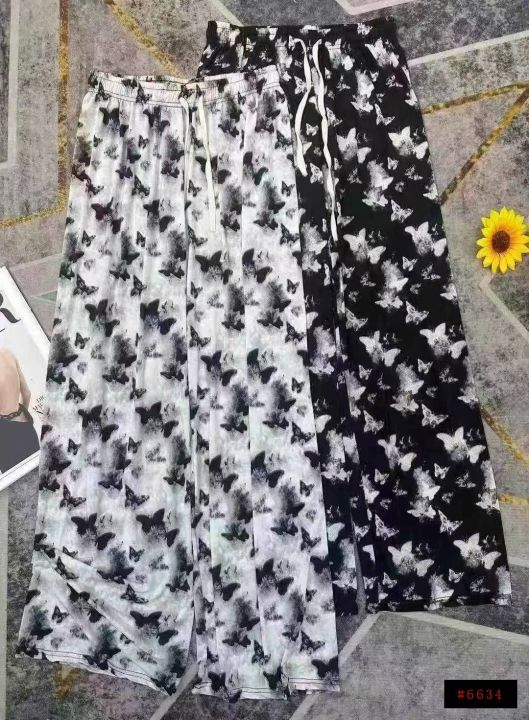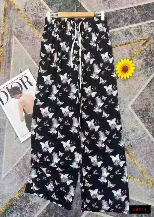新中式水墨蝴蝶冰丝阔腿裤夏季国风裤女薄款休闲垂感直筒拖地裤子,垂感好,面料柔软舒适,夏天穿它凉感十足[哇],松紧腰不挑人,全部全新独立包装,品质,200件起分货[太阳]9.8@_@
