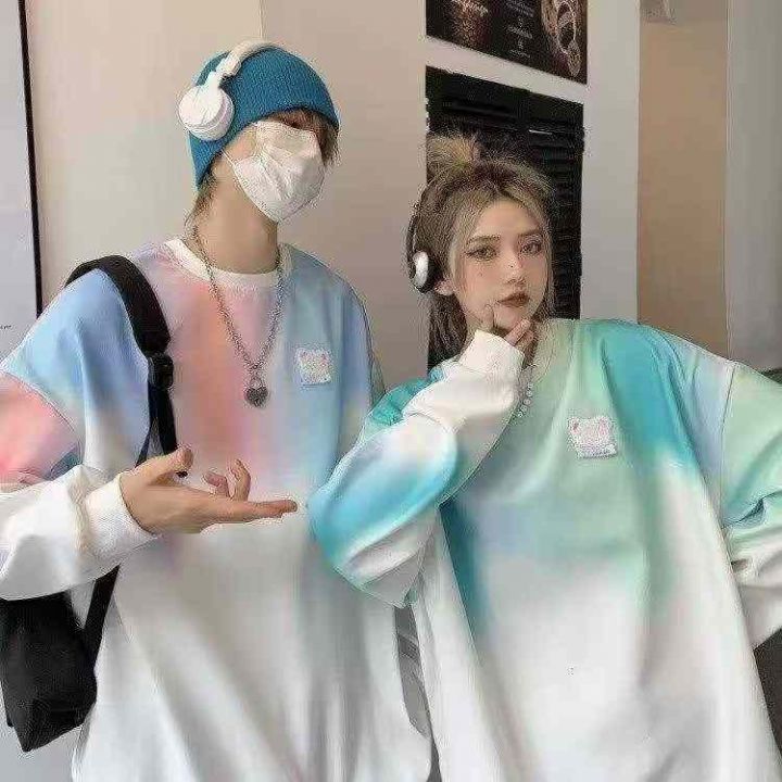 全清7.5潮流韩版春秋季渐变色扎染套头薄绒卫衣,情侣...