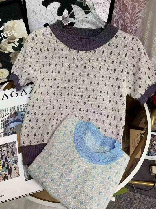 春夏季新款法式小香风减龄洋气独特别致设计感小众提花正肩短袖t恤针织衫,独立包装,均码年龄柔软舒适,338件,全清6.9元超低价秒杀!分货加一!