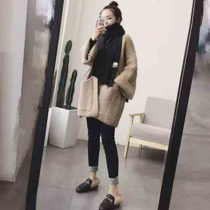 品牌原单韩系宽松净版简约粗针大口袋毛衣开衫,独立包...