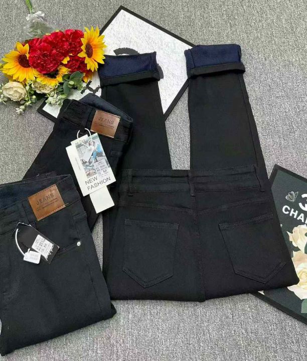 秋冬新款加绒加厚高弹力洗水棉牛仔烟管裤,独立包装带...