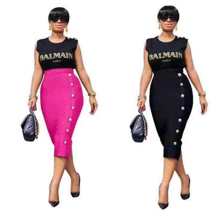 3.5清欧美跨境货源新款女装半身裙单排金属扣休闲包臀裙,整款两色,数量:9...