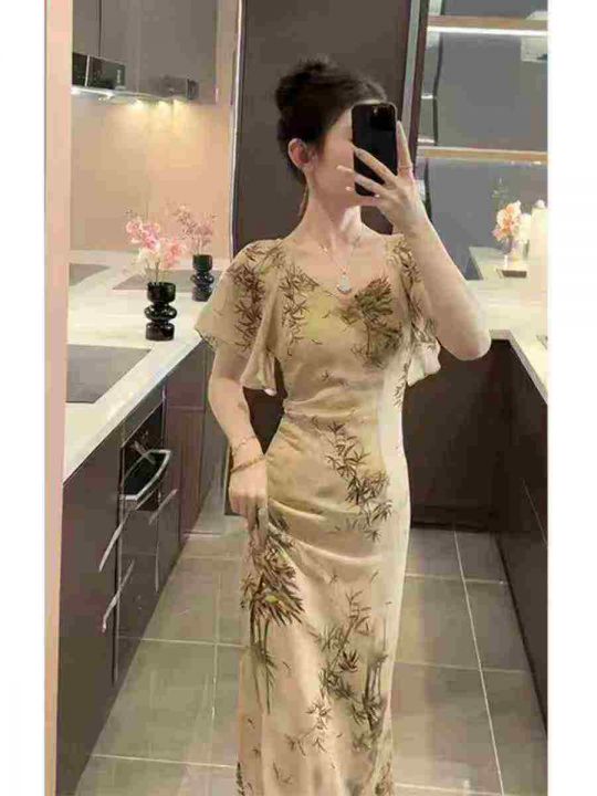 上新全清:14.9一件新中式国风水墨画气质高级连衣裙,[爱心]260件左右,码...