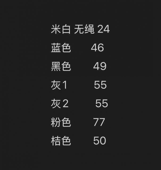 基本只有一个小码,当做均码卖!颜色下图附清单,另外有24条腰头无抽绳