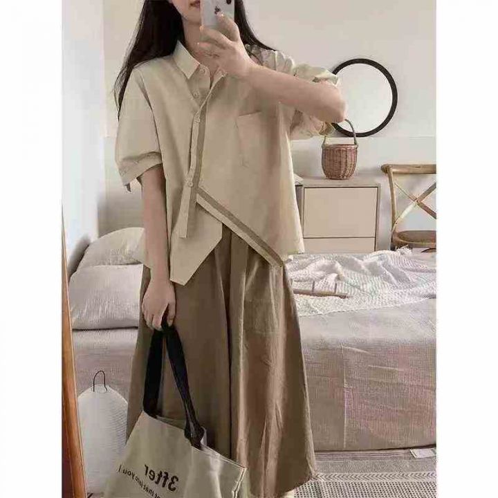 304件夏装新款一整套显瘦多巴胺女孩穿搭衬衫上衣休闲半身裙套装,上衣229件 裙子75条,可自行配套!尺码S-2XL,独立包装!品质好!福利秒杀价4.8。 货号:24862