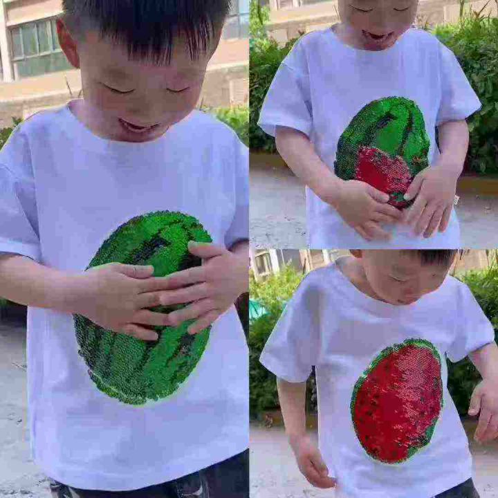 工艺款,儿童纯棉翻转亮片变色短袖t恤
