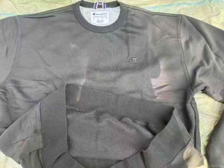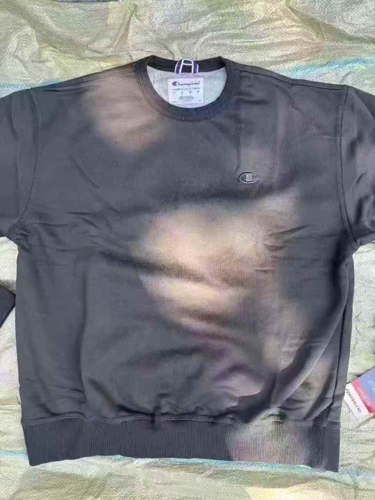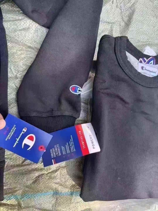 仅有76件,13处理。冠军加绒卫衣尺码很好 ,都是三标齐全,袖标刺绣,胸前刺绣。一个黑色,尺码很好,质量很好。清货13一件!