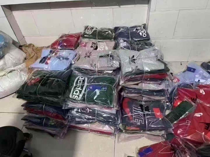 2025棉春季新款,华棉复合卫衣,帽衫占6圆领占4,男女同款,颜色非常好。三标花型特别多,颜色图案混搭配。一共700来件。100件一份 18带帽19一件