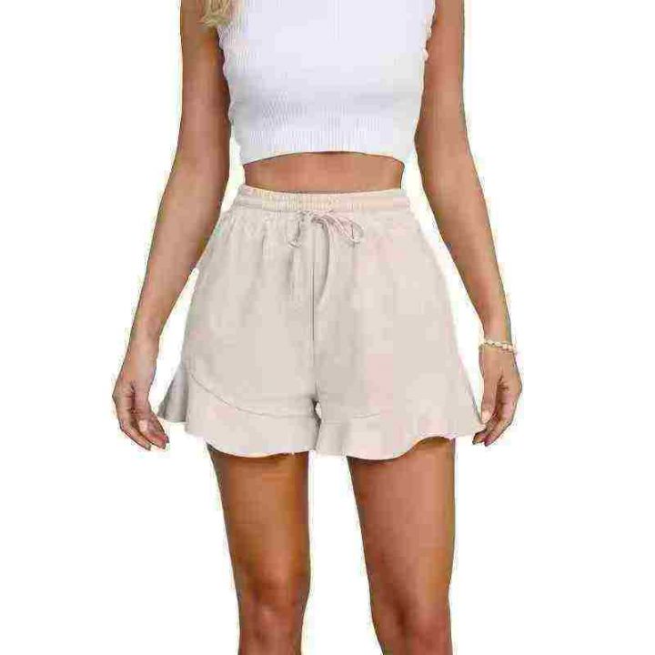 830条高品质棉麻荷叶边松紧腰抽绳设计短裤,宽松休闲...