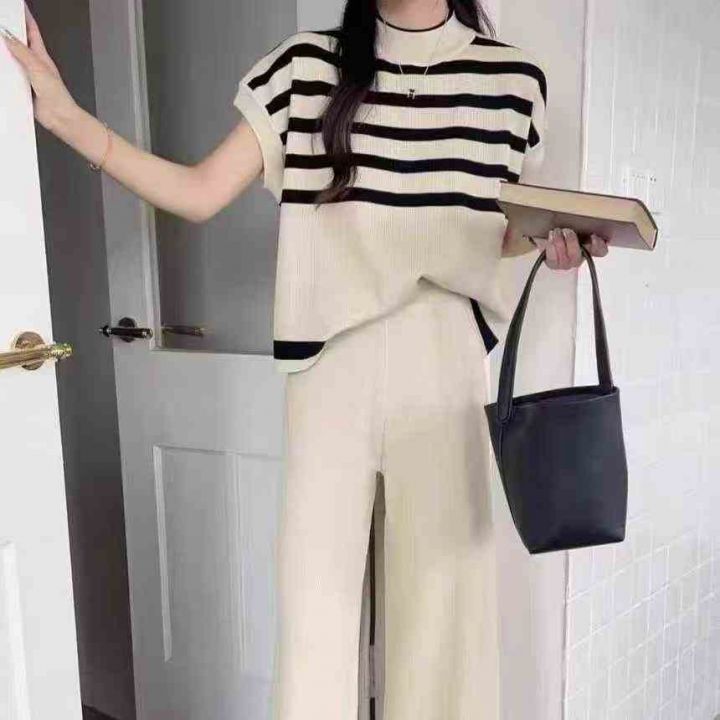 全清14.8分货+1,外贸简约高级感时髦小众条纹针织坎肩上衣+时尚修身阔腿裤...
