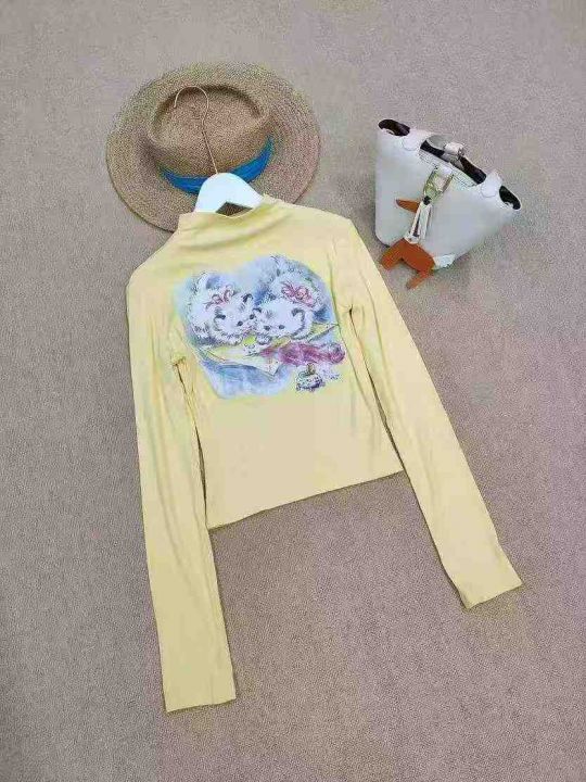 [月亮]:美式复古猫咪印花辣妹棉质长袖上衣