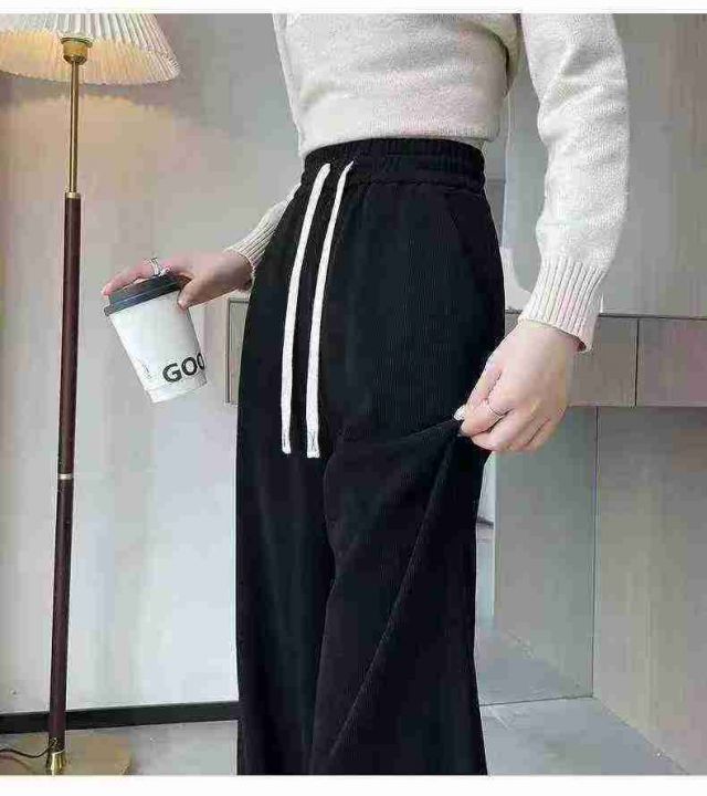 韩版简约女士雪尼尔灯芯绒垂感阔腿抽绳休闲直筒裤.图...